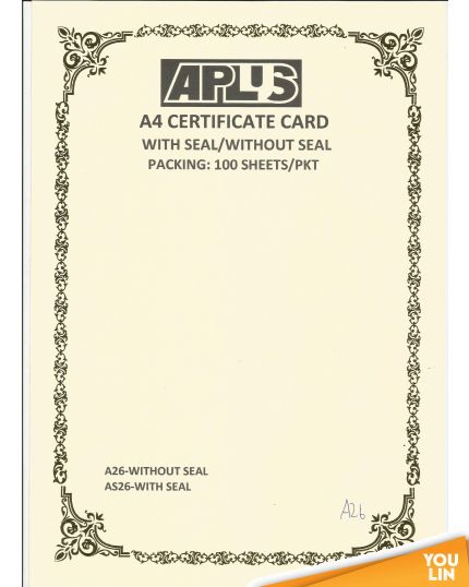 9. APLUS A4 160GM CERTIFICATE CARD 100'S/PKT - A26